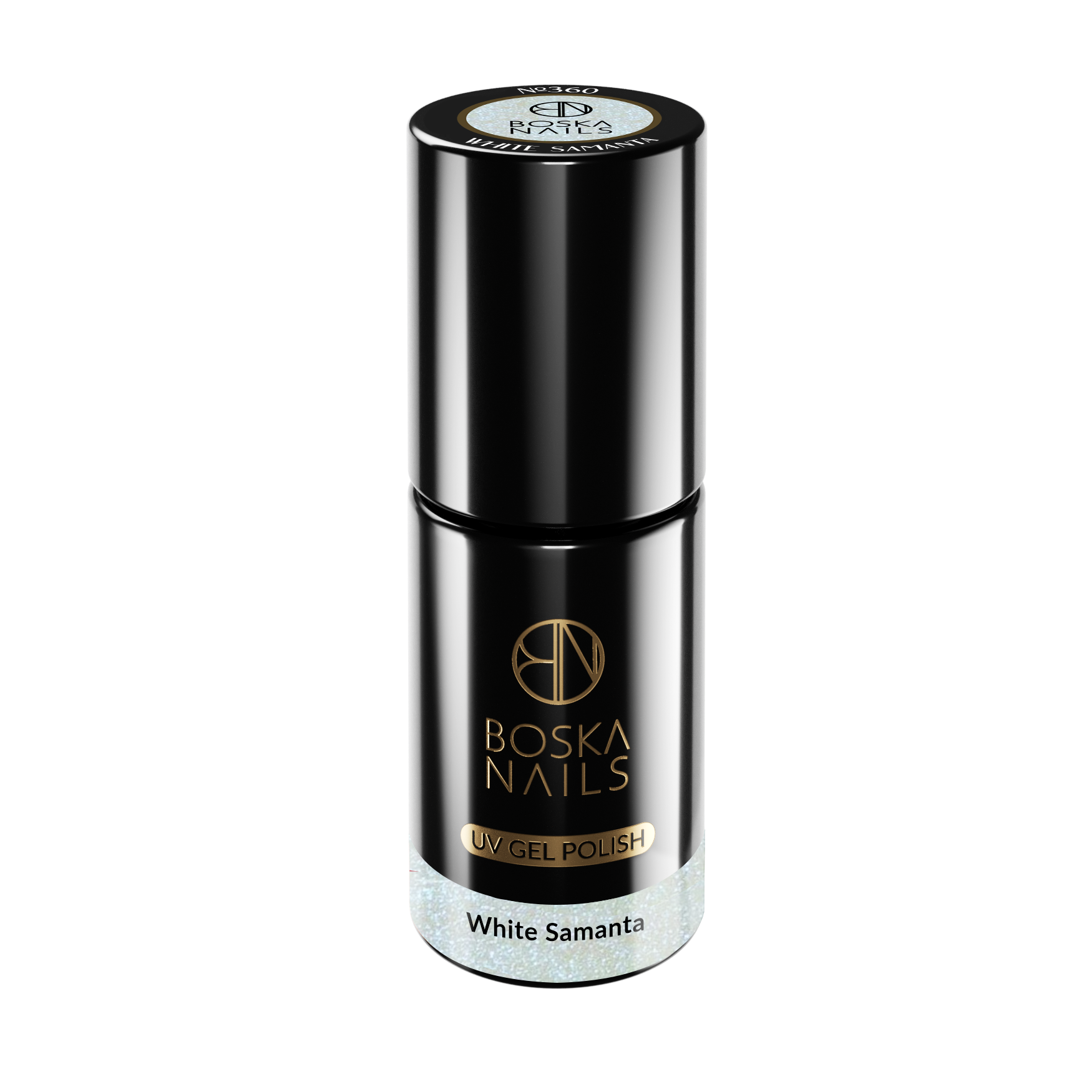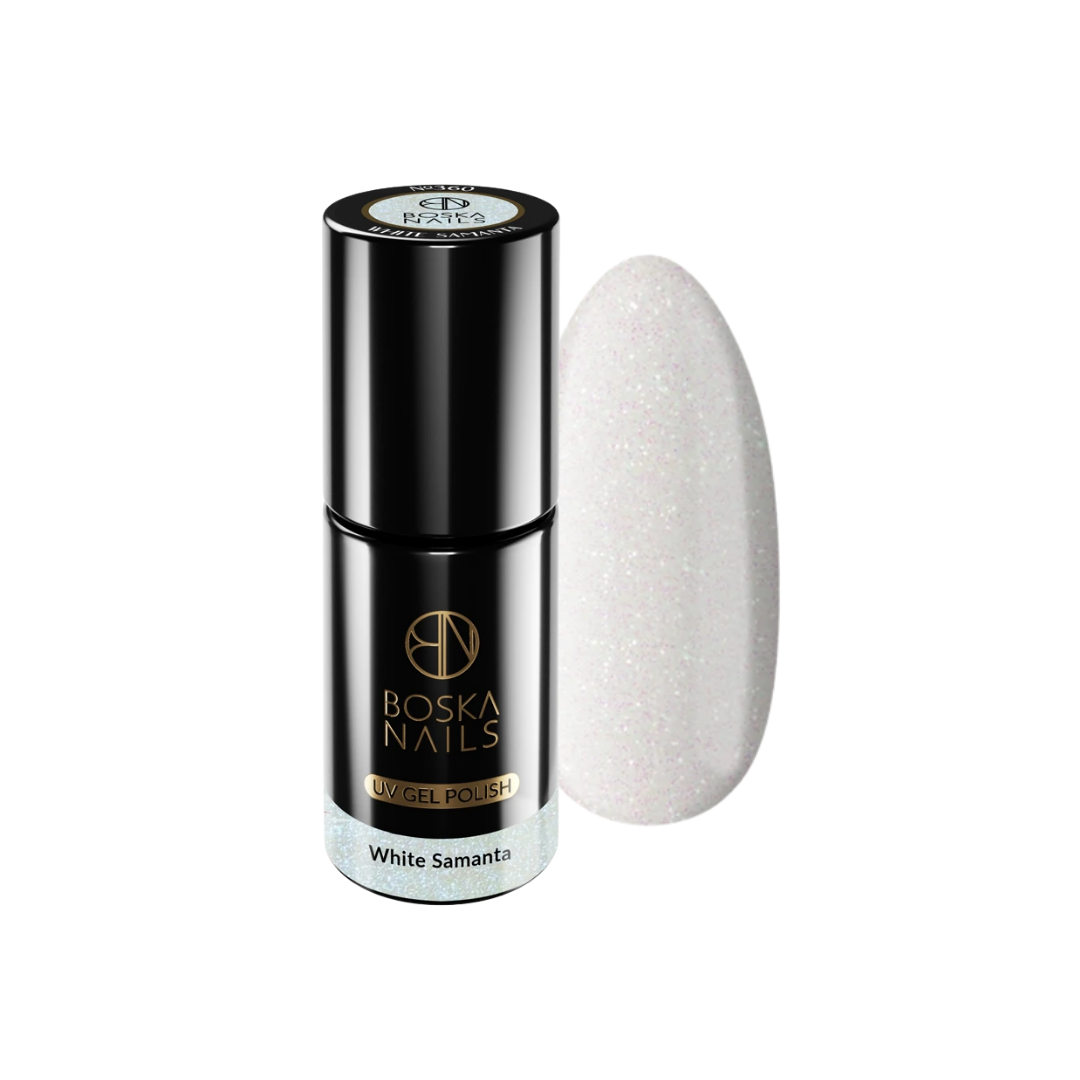 Lakier Hybrydowy Boska Nails w kolorze holo, białego brokatu White Samanta No 360.
