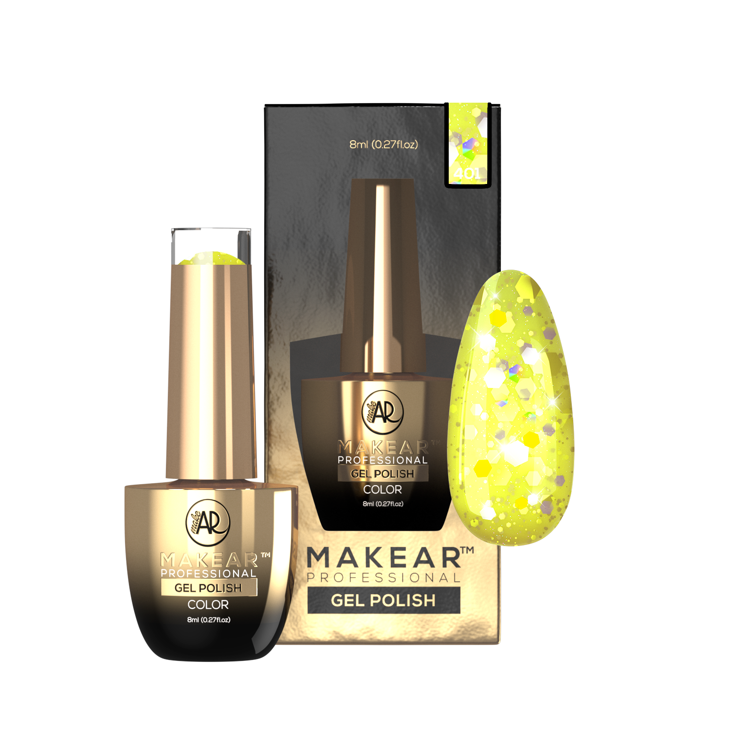 Lakier hybrydowy Makear S64 z kolekcji Stars to propozycja dla osób poszukujących wyjątkowego manicure, który łączy intensywny kolor z efektownym brokatowym wykończeniem. Dzięki zawartości drobno zmielonych, refleksyjnych cząsteczek, lakier tworzy spektakularny efekt „flash”, przyciągając spojrzenia i dodając stylizacji luksusowego charakteru.
