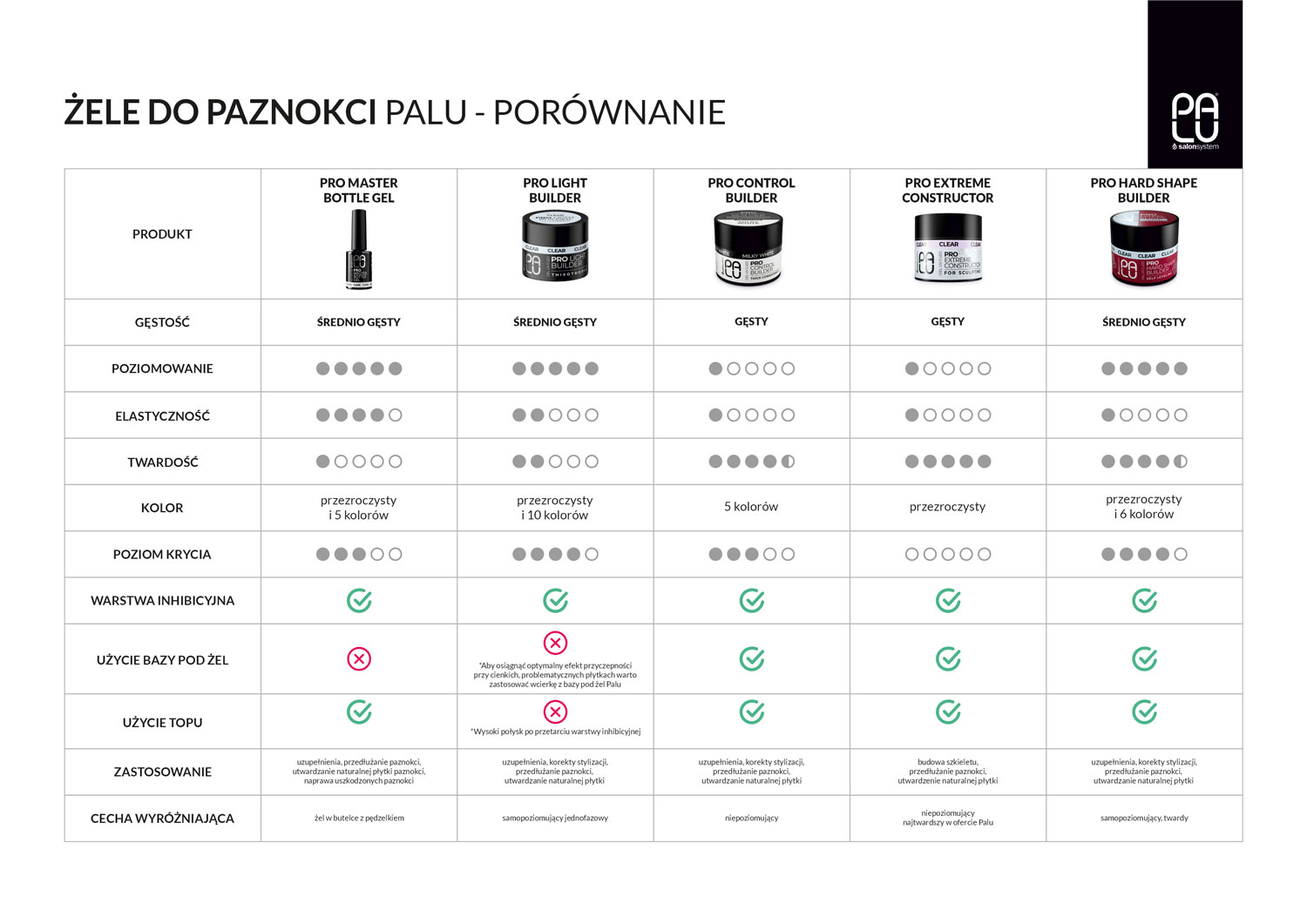 Po utwardzeniu Palu Pro Hard Shape Cute Pink staje się wyjątkowo twardy i stabilny, tworząc solidny szkielet paznokcia. Dzięki temu świetnie sprawdza się przy budowie zarówno krótkich, jak i długich przedłużeń na szablonie oraz dual formach. Żel doskonale nadaje się także do uzupełnień oraz wzmacniania naturalnej płytki paznokcia.