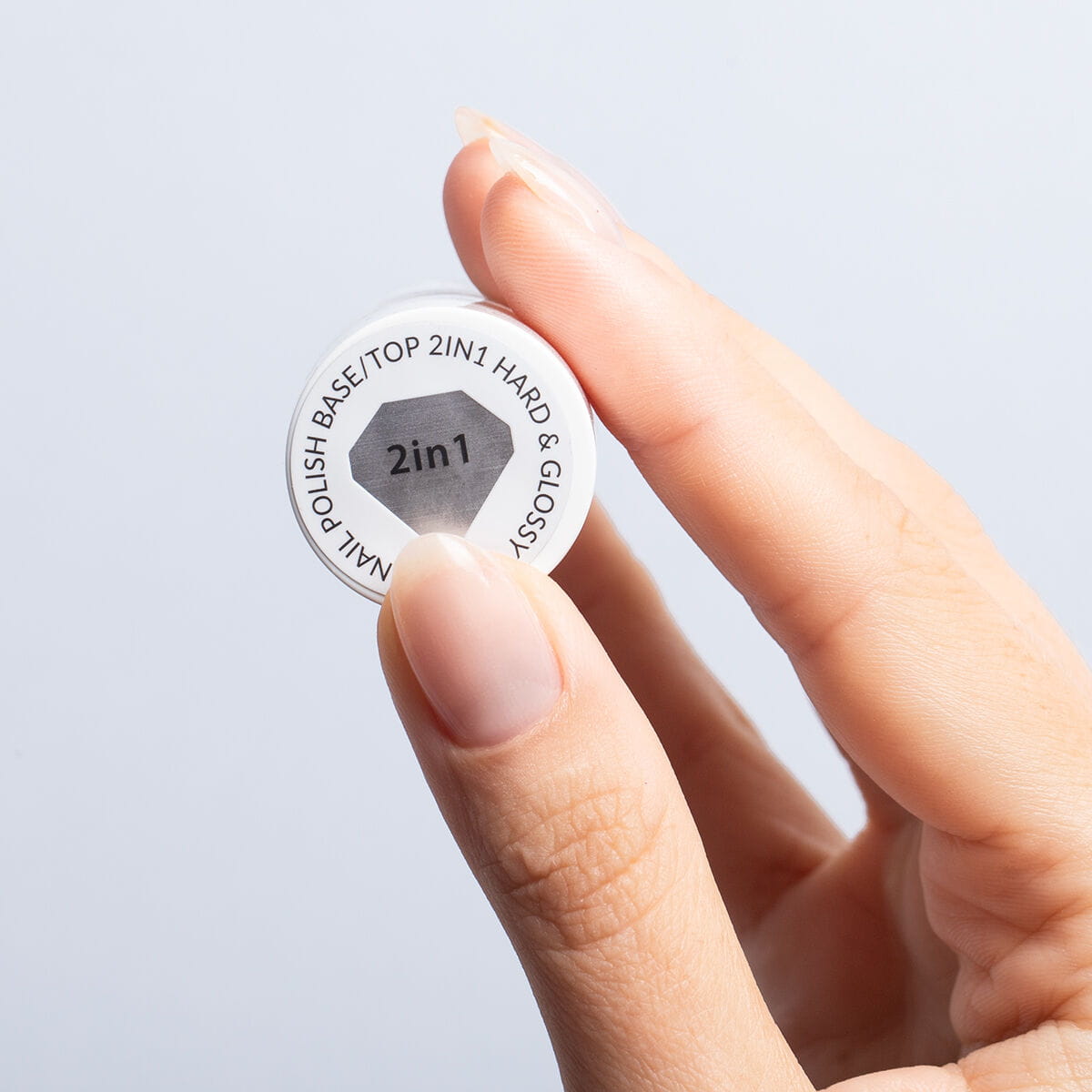 Bazo/Top 2w1 do lakierów klasycznych to unikalne połączenie 2 funkcji zamkniętych w jednym produkcje. W swojej formule zawiera bazę oraz top coat, dzięki czemu wydłuża trwałość manicure klasycznego do 7 dni oraz daje efekt utwardzonych paznokci. Zastosowany jako top zapewnia piękny połysk bez zarysowań, nieestetycznych smug i odprysków. Szybkoschnący lakier Hard & Glossy wysycha w 60 sekund. Formuła w ponad 84% oparta na składnikach pochodzenia naturalnego sprawi, że Twoje paznokcie będą wyglądały jak po pomalowaniu lakierem hybrydowym.