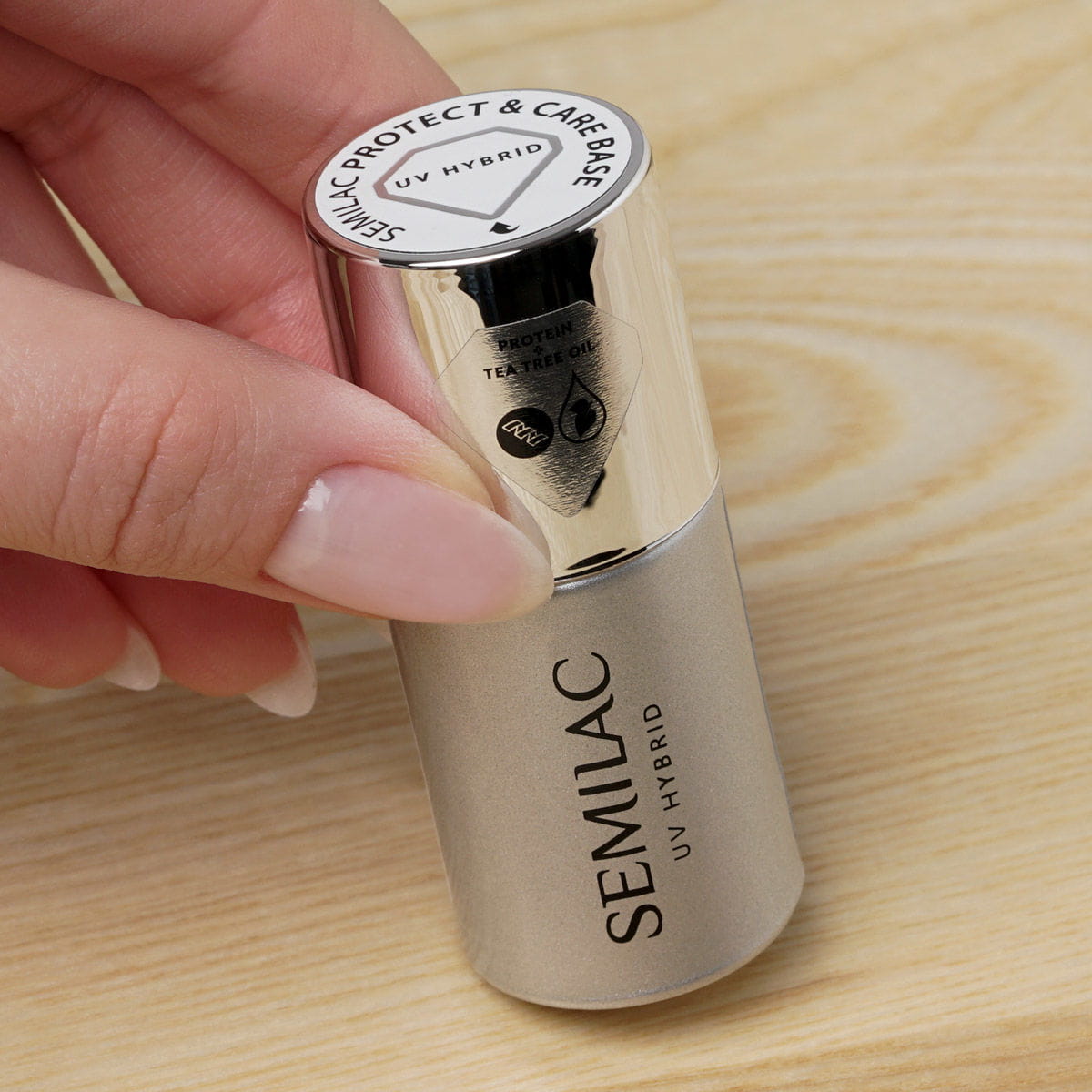 Zabezpieczająca baza hybrydowa dedykowana dla osób z cienkimi, kruchymi i łamliwymi paznokciami. Wzbogaciliśmy ją o proteiny, olej z drzewa herbacianego, diamentowy pył, ekstrakt z liści kapusty głowiastej, biotynę i glicerynę. Gęsta i twarda baza tworzy warstwę ochronną na płytce i zabezpiecza ją przed czynnikami zewnętrznymi. Paznokcie są wzmocnione i łatwiej się regenerują. Transparentna baza pozwala również wyrównać, nadbudować i przedłużyć płytkę paznokcia.