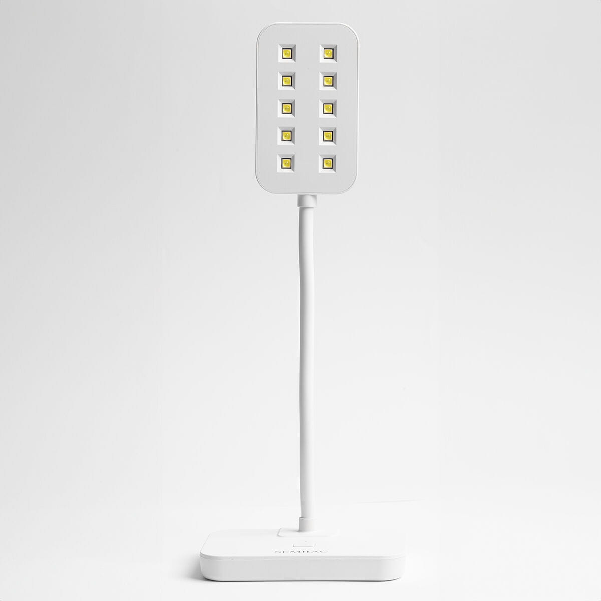 Twój niezbędnik w przedłużaniu! Semilac Lampa Punktowa dzięki swojej solidnej podstawie pozwala Tobie na pracę nie zastanawiając się, gdzie ją przymocować. Wyposażona została w 10 diod ledowych z zaprogramowanym 30 sekundowym trybem pracy. Elastyczna ruchoma nóżka umożliwia Tobie dowolne ustawienie lampki maksymalizując komfort Twojej codziennej pracy. Z pozoru niepozornie wyglądającą lampkę wyposażyliśmy w 12 W mocy, które poradzą sobie perfekcyjnie z wstępnie utwardzanym materiałem.