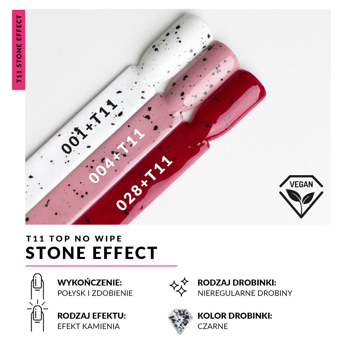 Prosty sposób na spektakularną zmianę Twojego ulubionego manicure z efektem kamieni na paznokciach. Przezroczysty Top wzbogaciliśmy o małe czarne drobiny, które z łatwością odmienią każdą stylizację. Dopraw swoje paznokcie lśnieniem głębi zatopionych drobin uzyskując niebanalny efekt kamieni w Twoim ulubiony kolorze. Produkt charakteryzuje się konsystencją podobną do Semilac Top No Wipe. Przed każdym użyciem dokładnie wymieszaj produkt.
